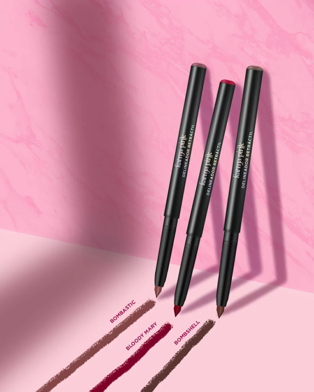 3 delineadores de labios, que abarcan una banda de tonos distintos y versátiles, para lograr labios más definidos, por más tiempo